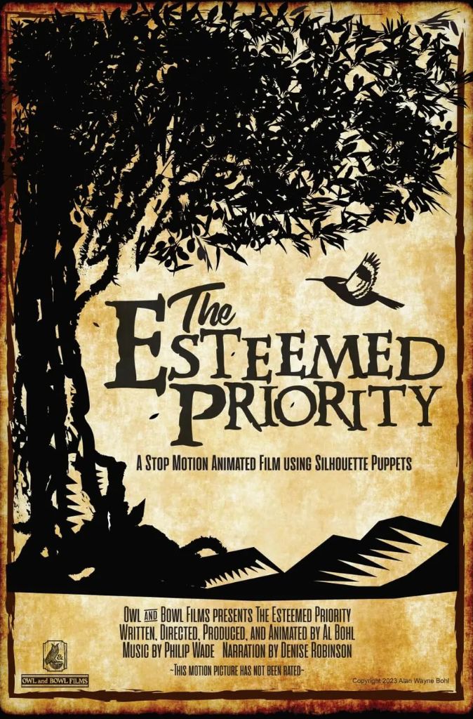 The Esteemed Priority is a short stop motion animated film using silhouettes in the classic tradition of the filmmaker Lotte Reiniger. It’s a story as old as time but just as timely. In today’s world where the chaos of hate, prejudice, and racism is everywhere we ask the questions, “what is love? Is what we call love, really love? How do you know? Is there a means to measure or determine if we truly love something or someone?” Yes, there is a way, and this makes love – the priority of highest esteem. A man went on a journey….